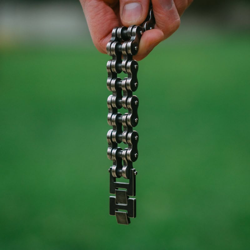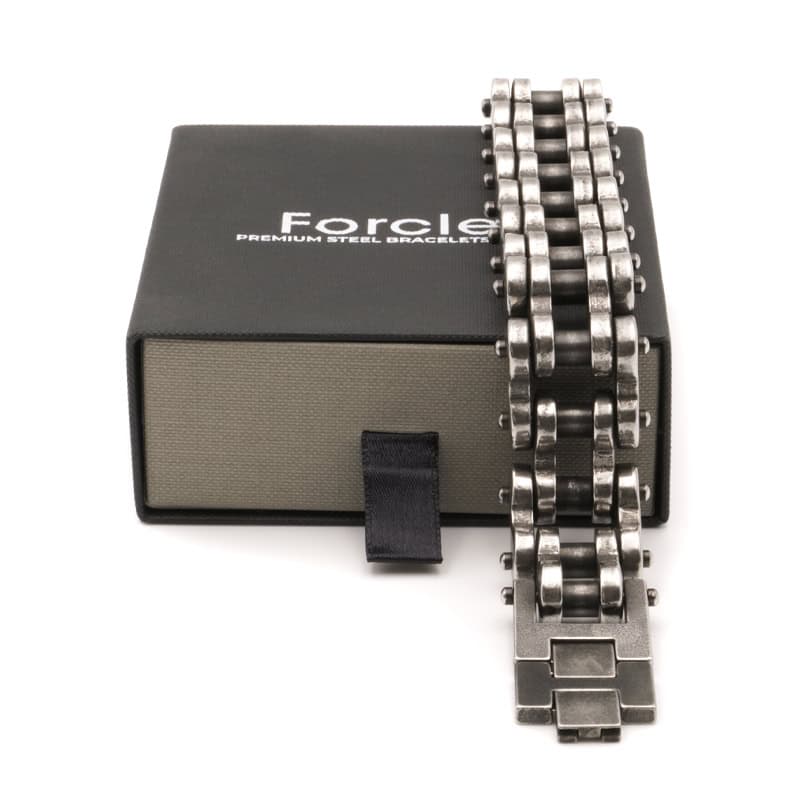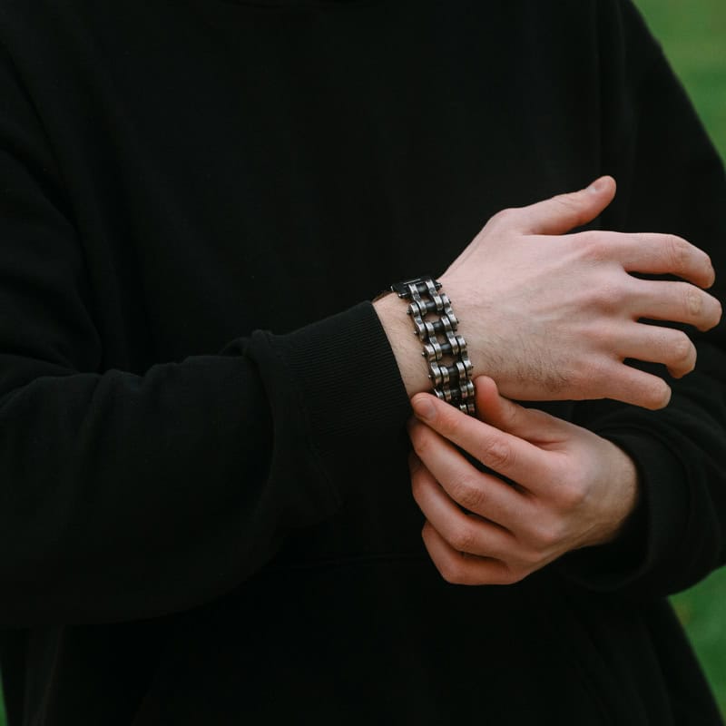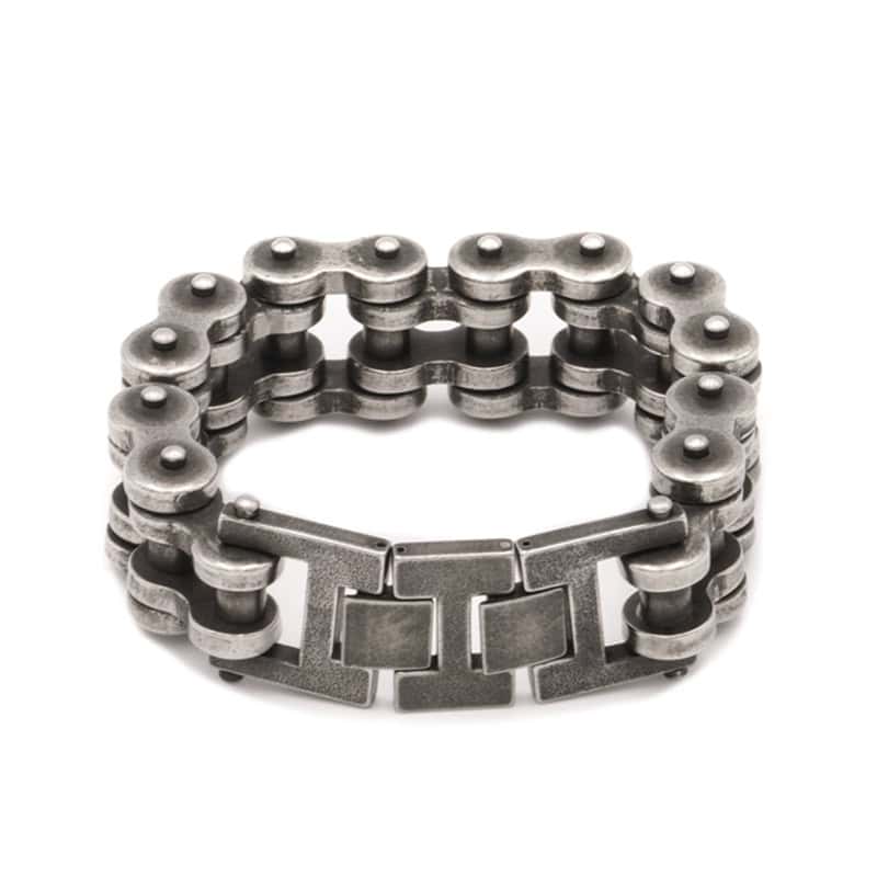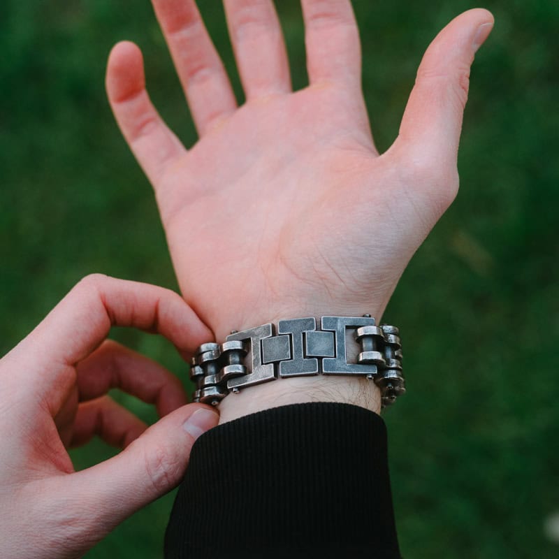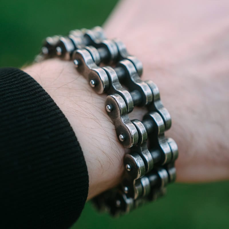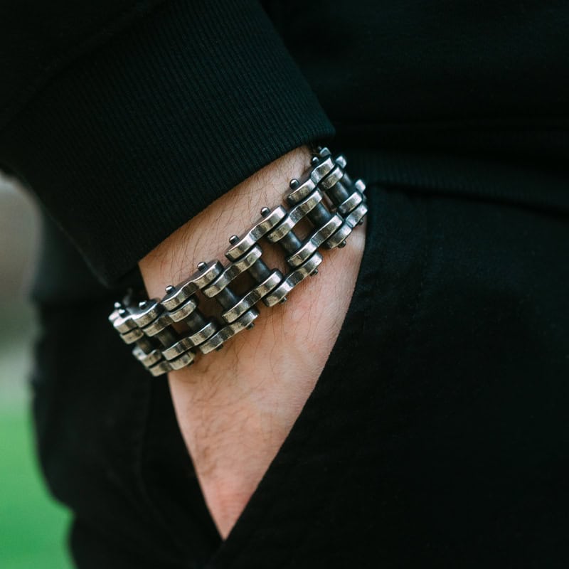 A Forclet 20mm bicikli lánc karkötő az ipari formavilág és a modern férfi stílus találkozása.