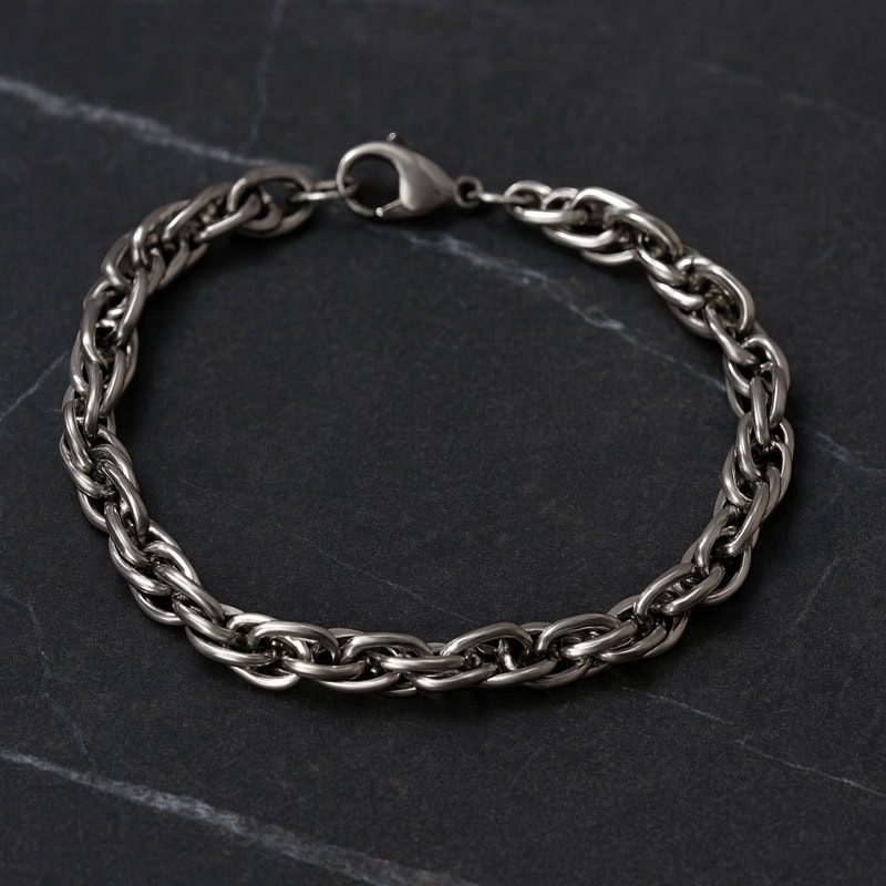 A karkötő 316L nemesacélból készül, így nem allergizál, és hosszú ideig megőrzi színét.