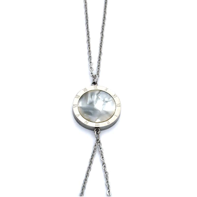A Forclet Gravírozható Római Számos Fehér Kristály Lánc egyedülálló eleganciát kölcsönöz viselőjének, köszönhetően a precízen megmunkált medálnak.